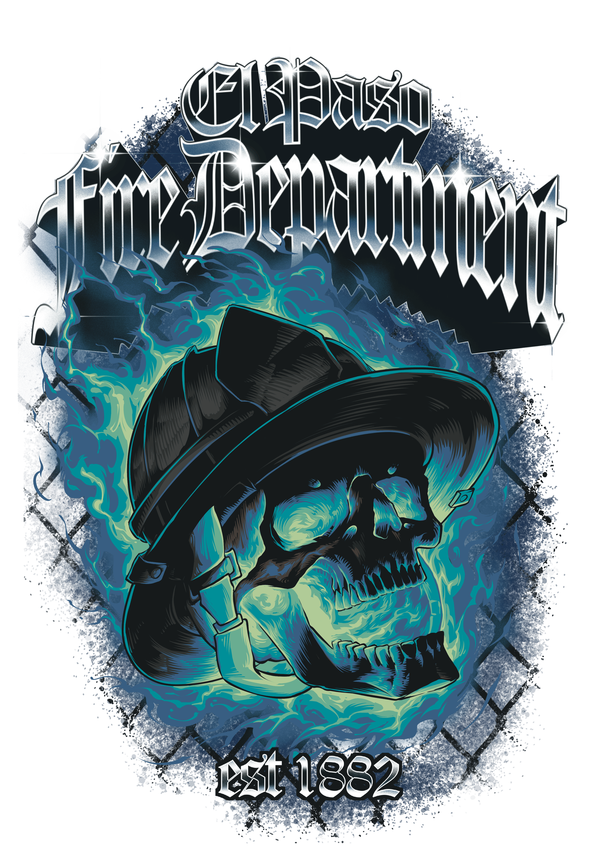 BLUE FLAMING SKULL